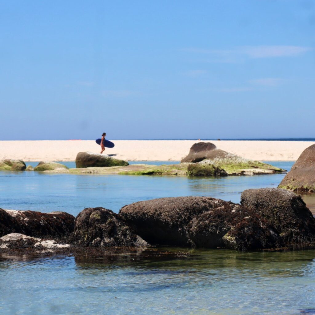 Ls playa es tan extensa que antes de llegar tendrás que decidir en qué parte deseas extender la toalla. A mí me gusta mucho la zona de Boca do Río, donde desemboca el rio Vadebois y forma pozas para bañarse. Aquí no hay chiringuitos como tal, solo un quiosco de bebidas y poco más, pero compensa. Suele haber niños jugando y hay que estar atento a la marea.