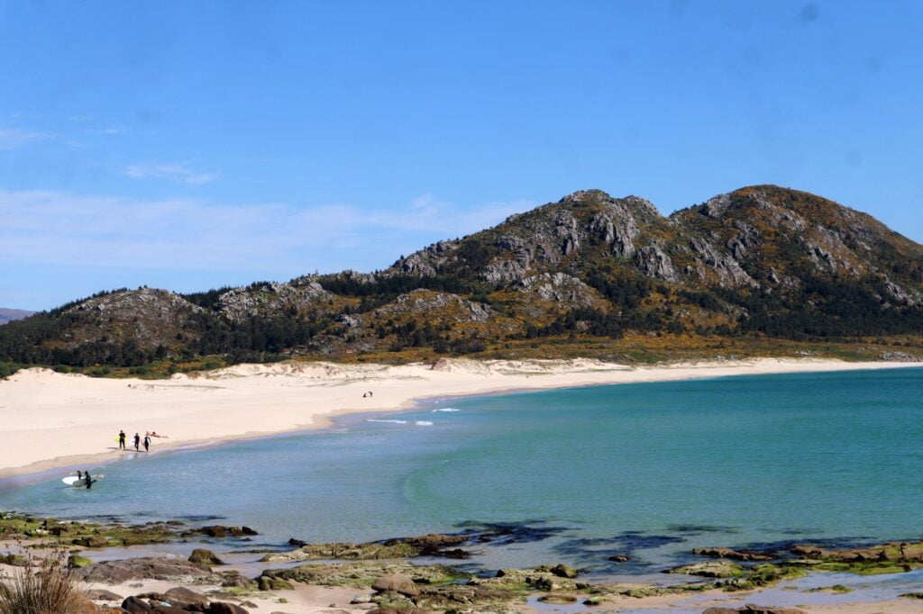 Ya solo el nombre suena a música celestial y es que estamos en un espacio natural protegido, de gran belleza. Sus casi 7 Km la convierten en la playa más larga de Galicia, pero si estas te parecen pocas razones para venir a pasar un día, decirte que su estado de conservación es ejemplar, su arena es blanca y sus aguas turquesas y la vista al monte Pindo es todo un espectáculo.